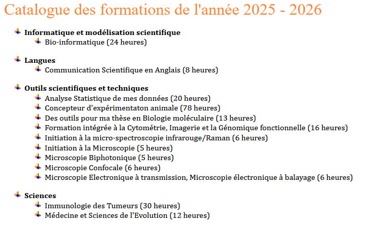 Attention : toute inscription à une formation engage l’étudiant à la suivre. Les doctorants ne se présentant pas le jour de la formation ne seront pas prioritaires pour les autres formations demandées pour l’année en cours.
